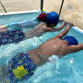 先生達から浮き方や息継ぎの仕方、目を開ける練習などを遊びの中で時には真剣に